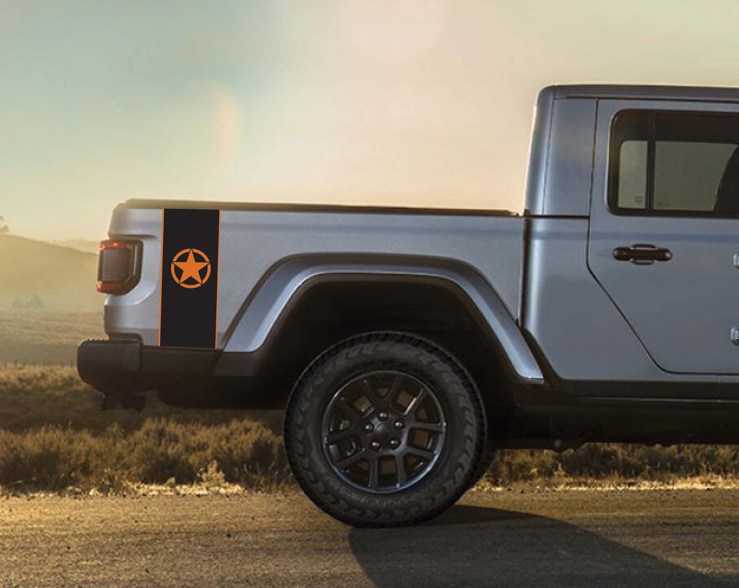 Army Star Color Line Blackout Bed Stripe Decal Set- fits 2020 and Newer Jeep Gladiator & Trucks