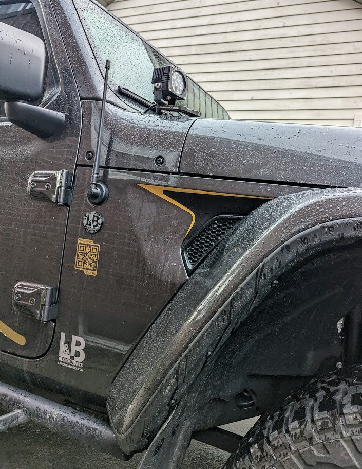 Accent line decal cut to fit inside the 2018 & newer Jeep Wrangler JL and 2020 and newer Jeep Gladiator fender vent.