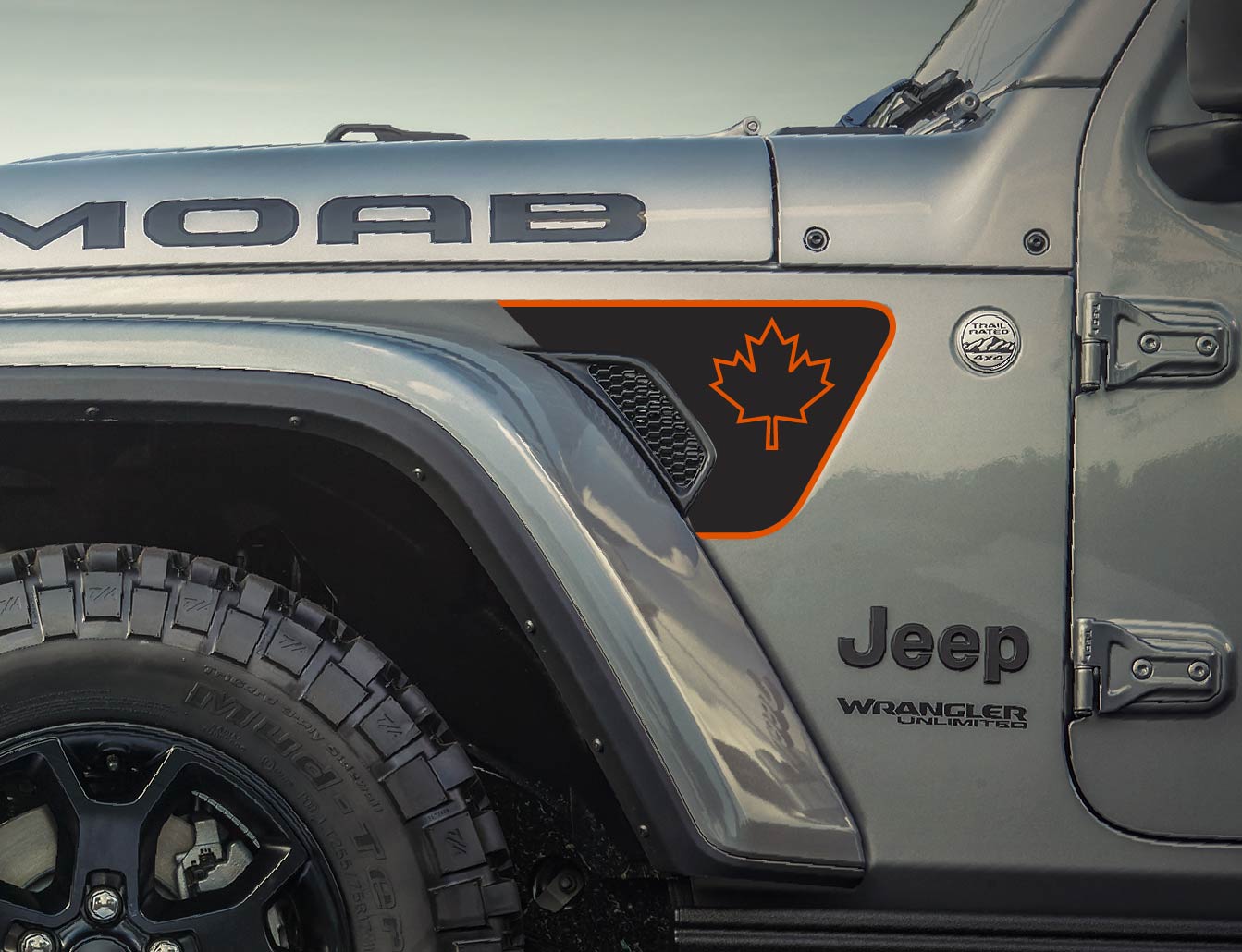 Canadian Maple Leaf Color Line Blackout 2-Layer Decal- Fits Jeep Wrangler & Gladiator JL Fender Vent Decal-Pair