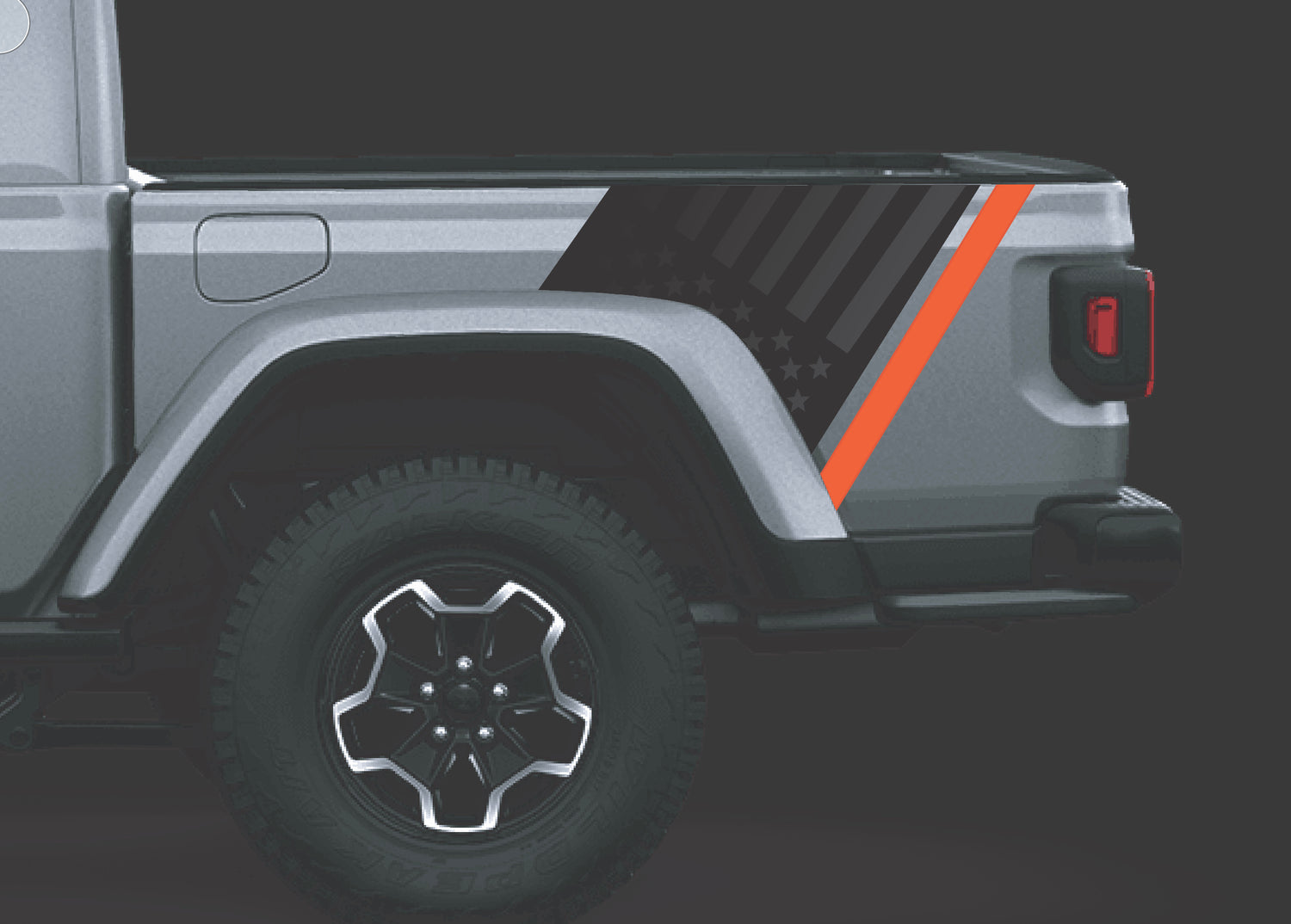 Color Line American Flag Bed Decal Jeep Gladiator Single Layer Printed Decal Pair