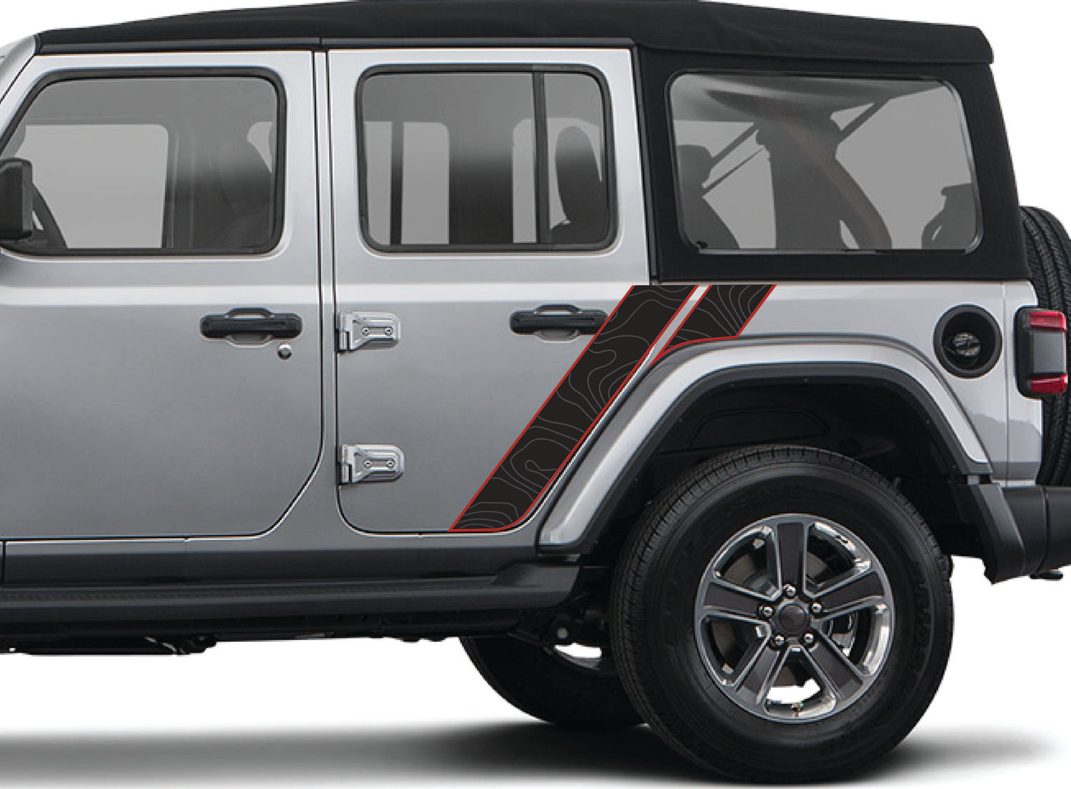 Double Stripe Topographical Color Line Rubicon Blackout Decal Set- fits 2018 and Newer Jeep Wrangler