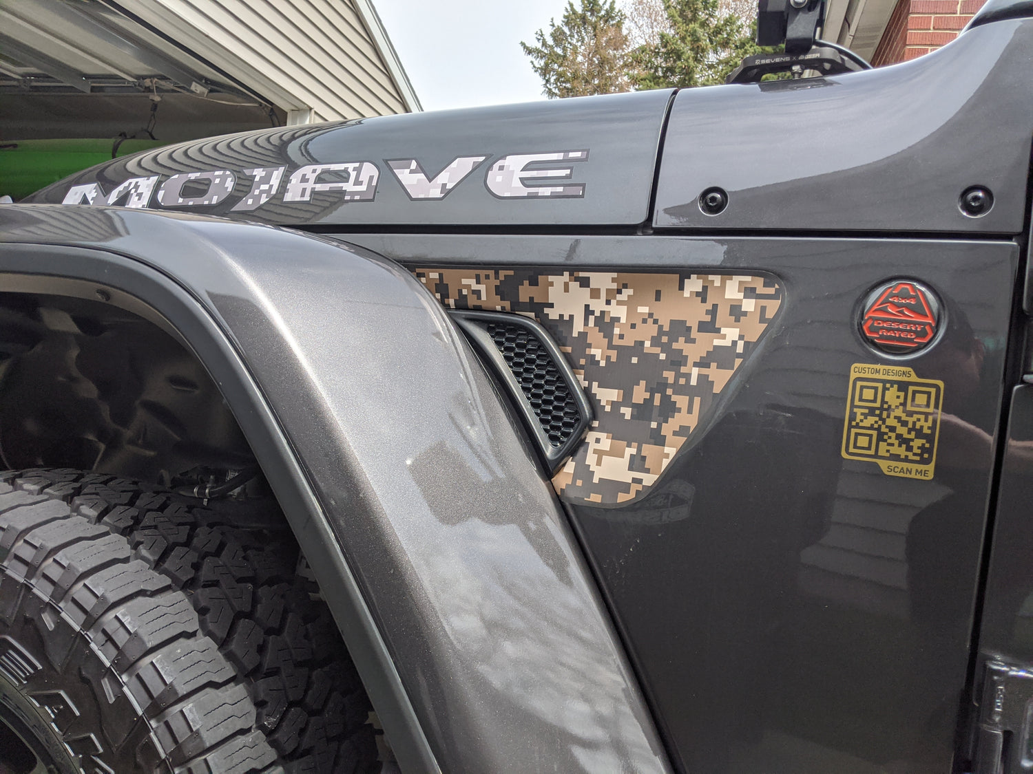 Digital Camouflage Printed Blackout Vent Rubicon Mojave decal set- fits 2020 and newer Jeep Gladiator