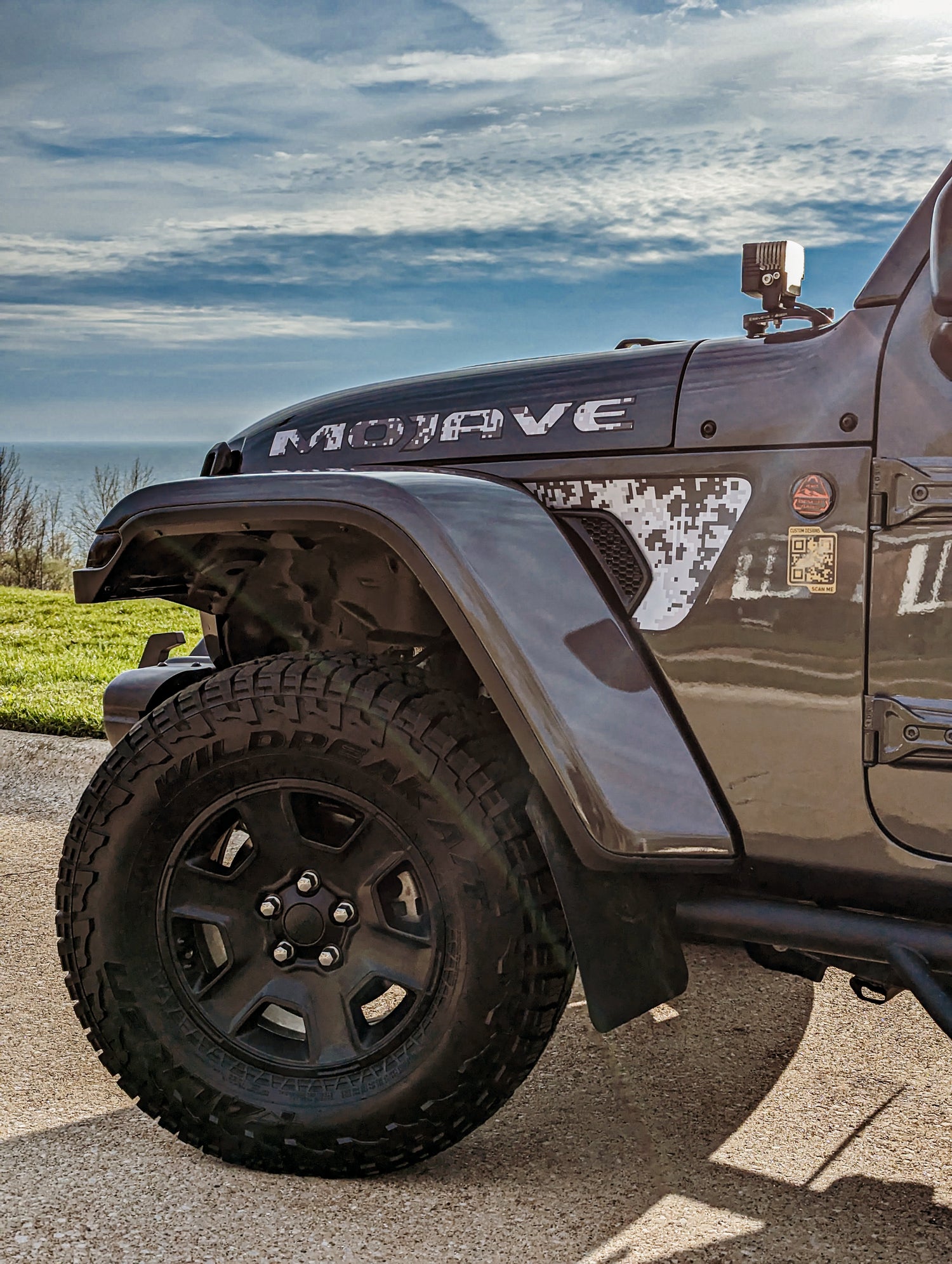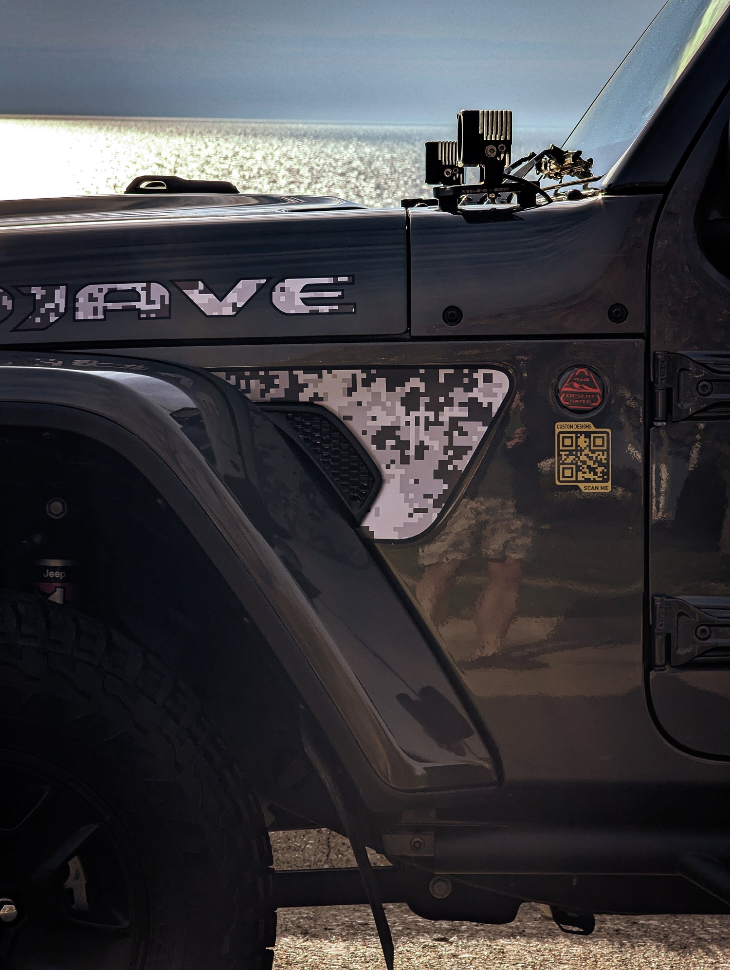 Printed Camo design decal cut to fit on the 2018 and newer Jeep Wrangler 2020 and newer Jeep Gladiator vent area.