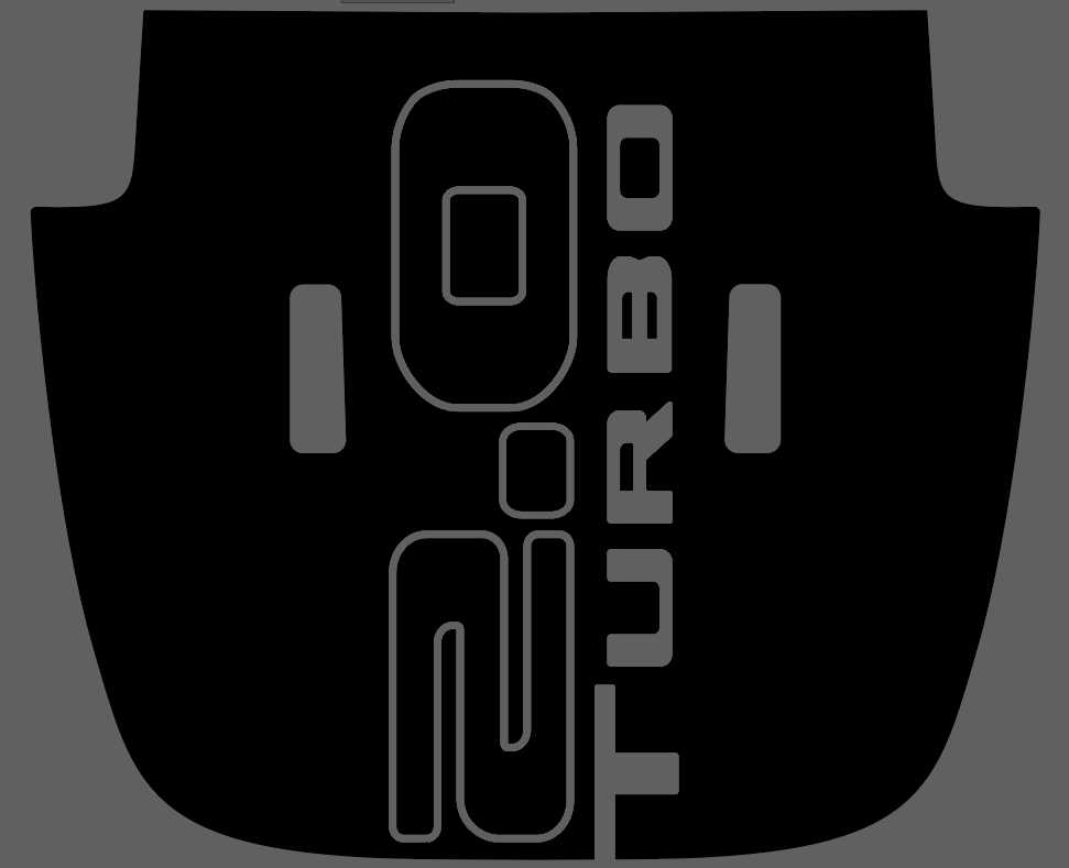 2.0 Turbo design cut to fit on the 2018 & newer Jeep Wrangler JL and 2020 and newer Jeep Gladiator hood. Designed to fit between washer nozzles.