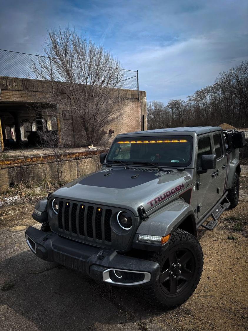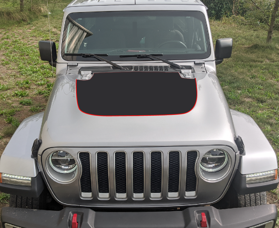 Full Blackout red line decal cut to fit on the 2018 & newer Jeep Wrangler JL and 2020 and newer Jeep Gladiator hood. Designed to fit around washer nozzles.