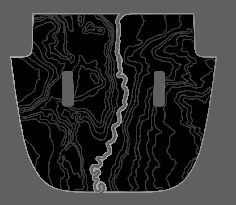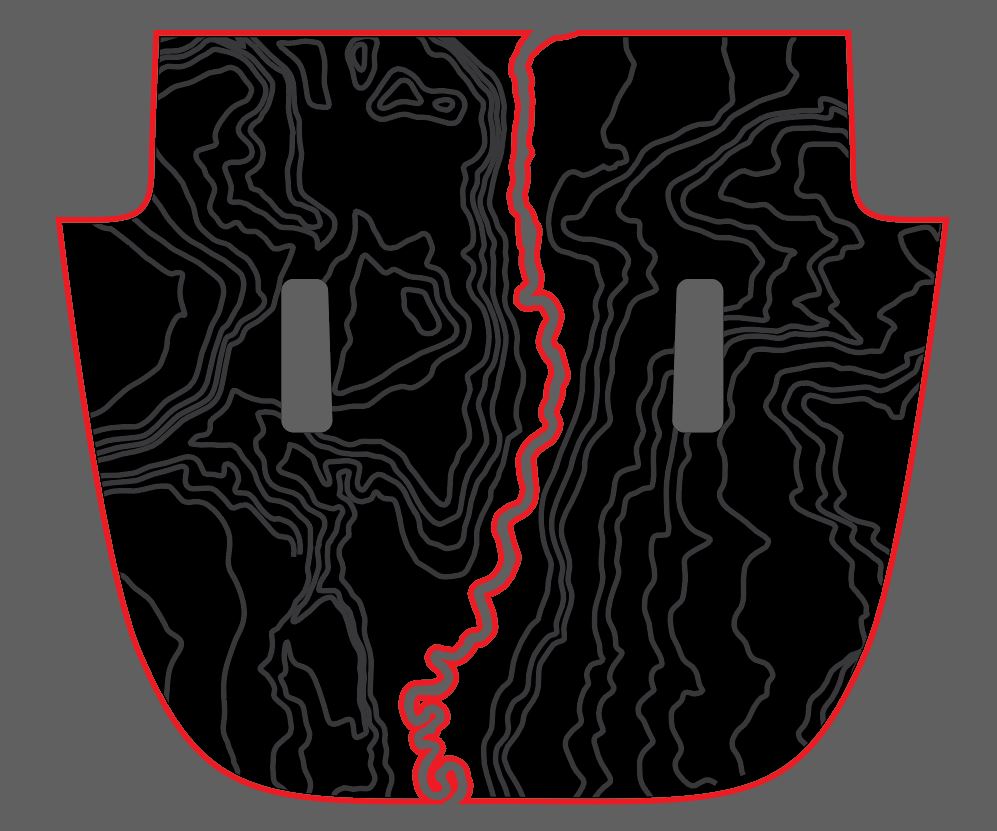 Decal comes as 6 total pieces. (Left and right piece of each) Matte black with gloss color. Topographical lines are gloss black and premasked (left/Right). Decals are cut sent separately, for you to align and apply. Apply red using the wet method first, then after dry, apply decals using wet method.