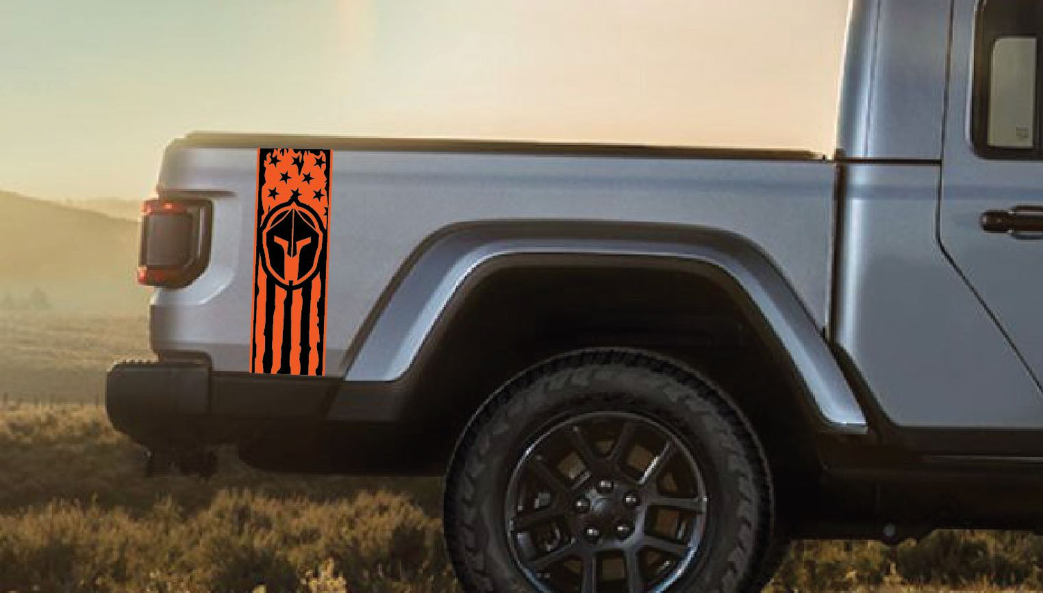 Gladiator Spartan American Flag Color Line Blackout Bed Stripe Decal Set- fits 2020 and Newer Jeep Gladiator & Trucks
