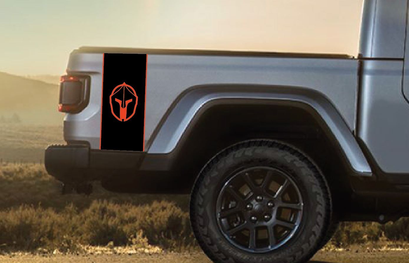 Gladiator Spartan Helmet Color Line Blackout Bed Stripe Decal Set- fits 2020 and Newer Jeep Gladiator & Trucks