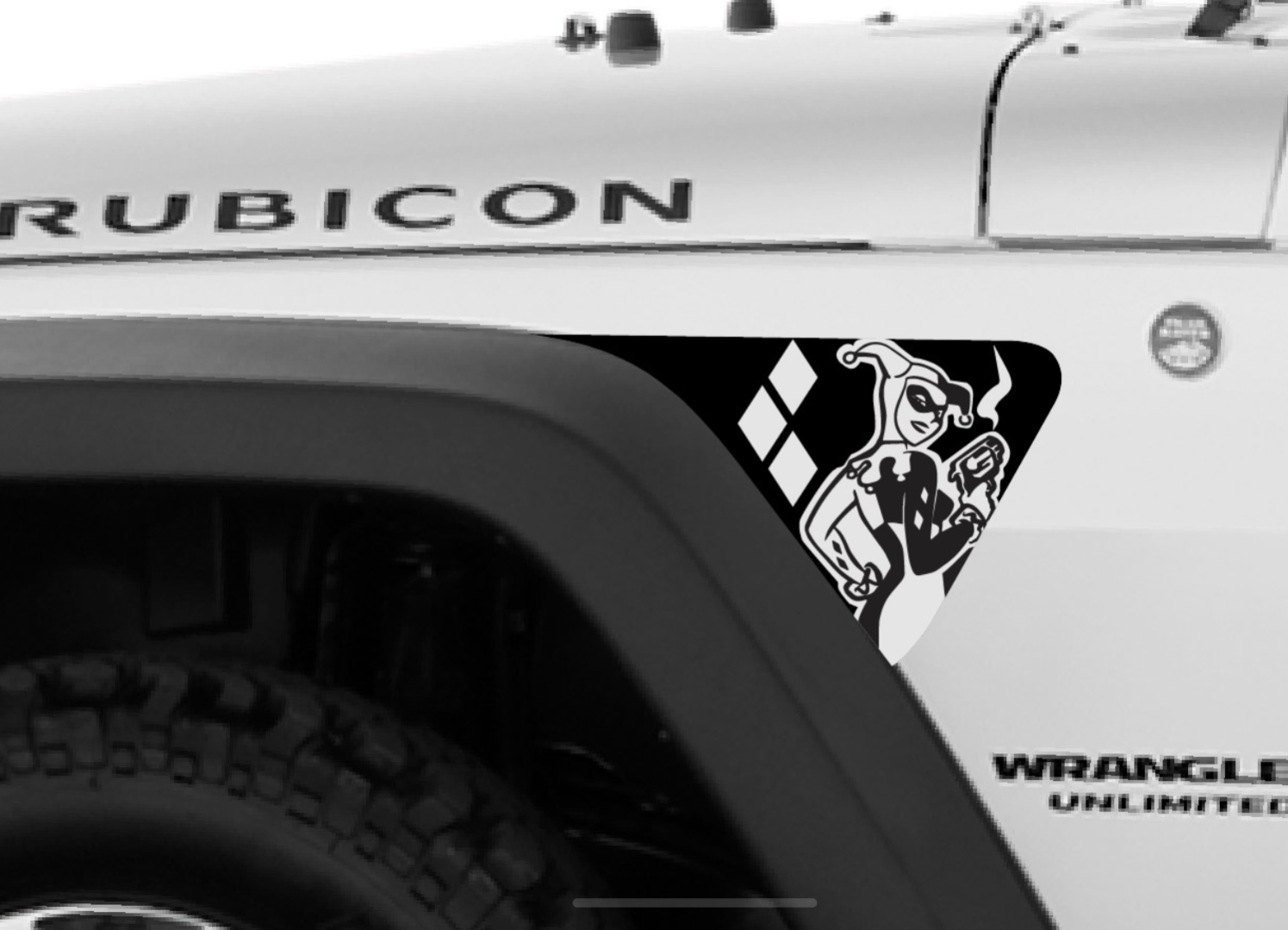 Harley Quinn Inspired Decal vinyl decal cut to fit inside the 2018 & newer Jeep Wrangler JK Fender