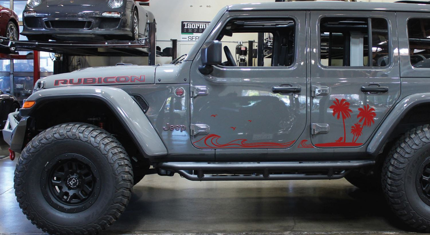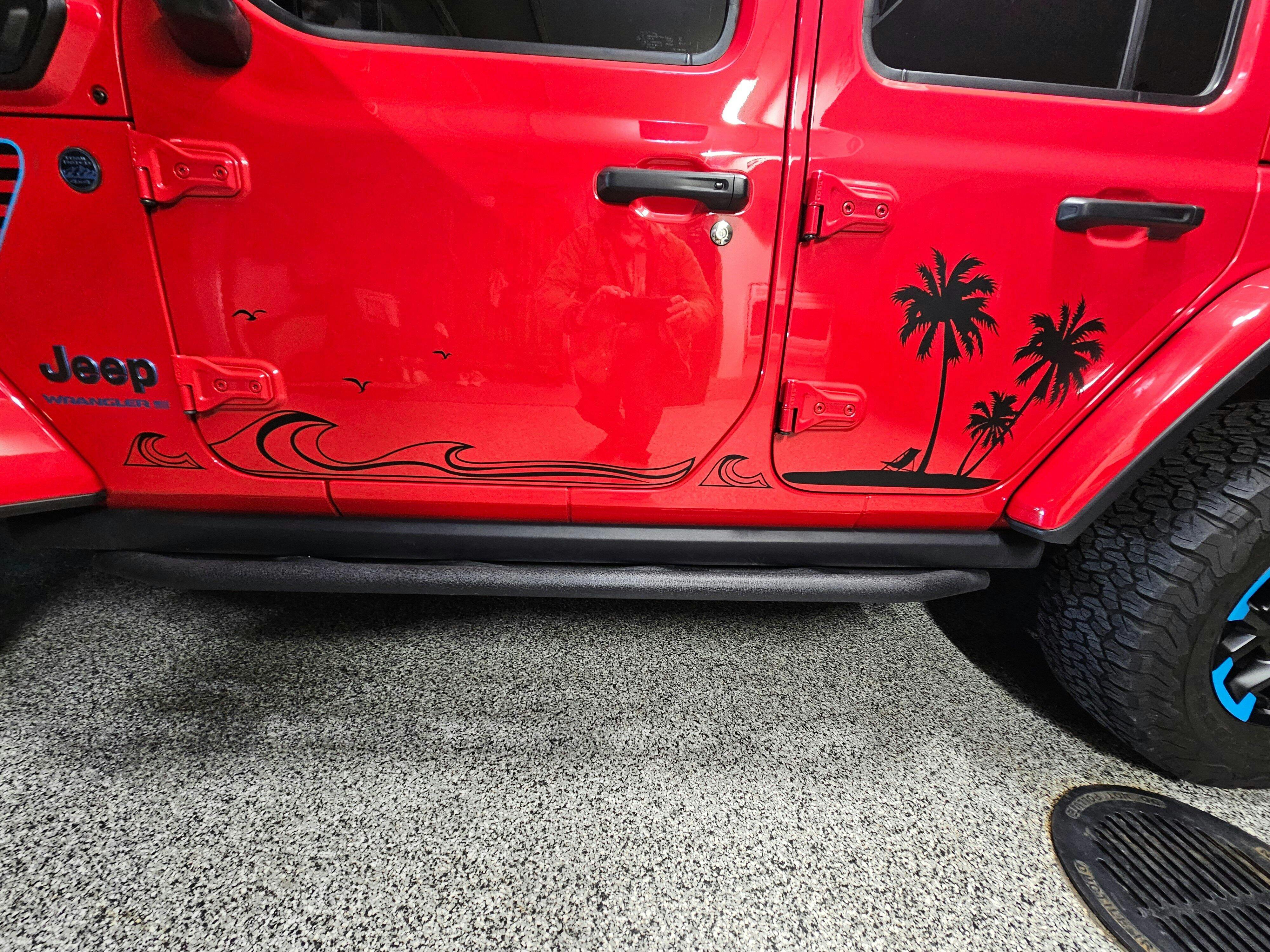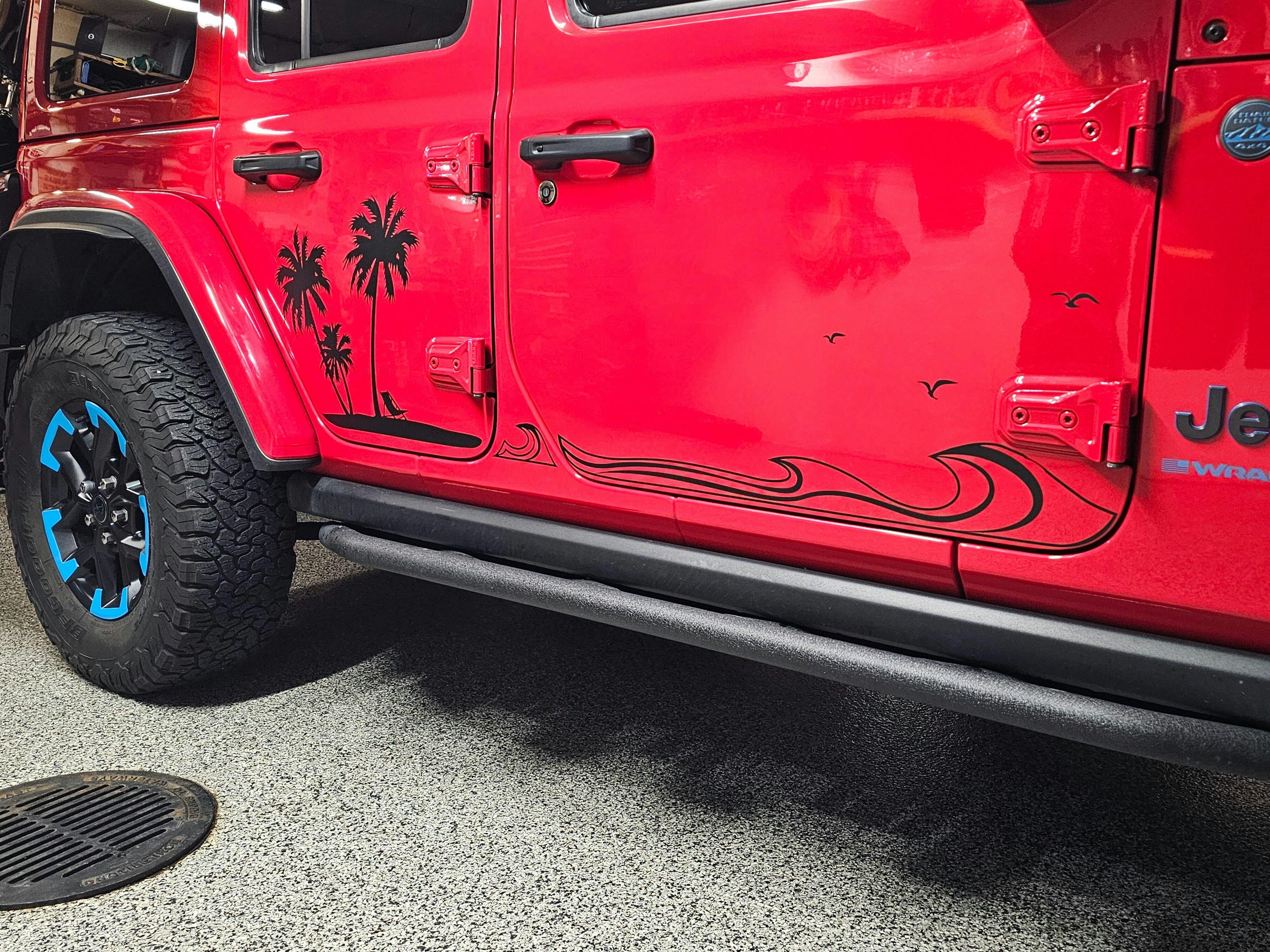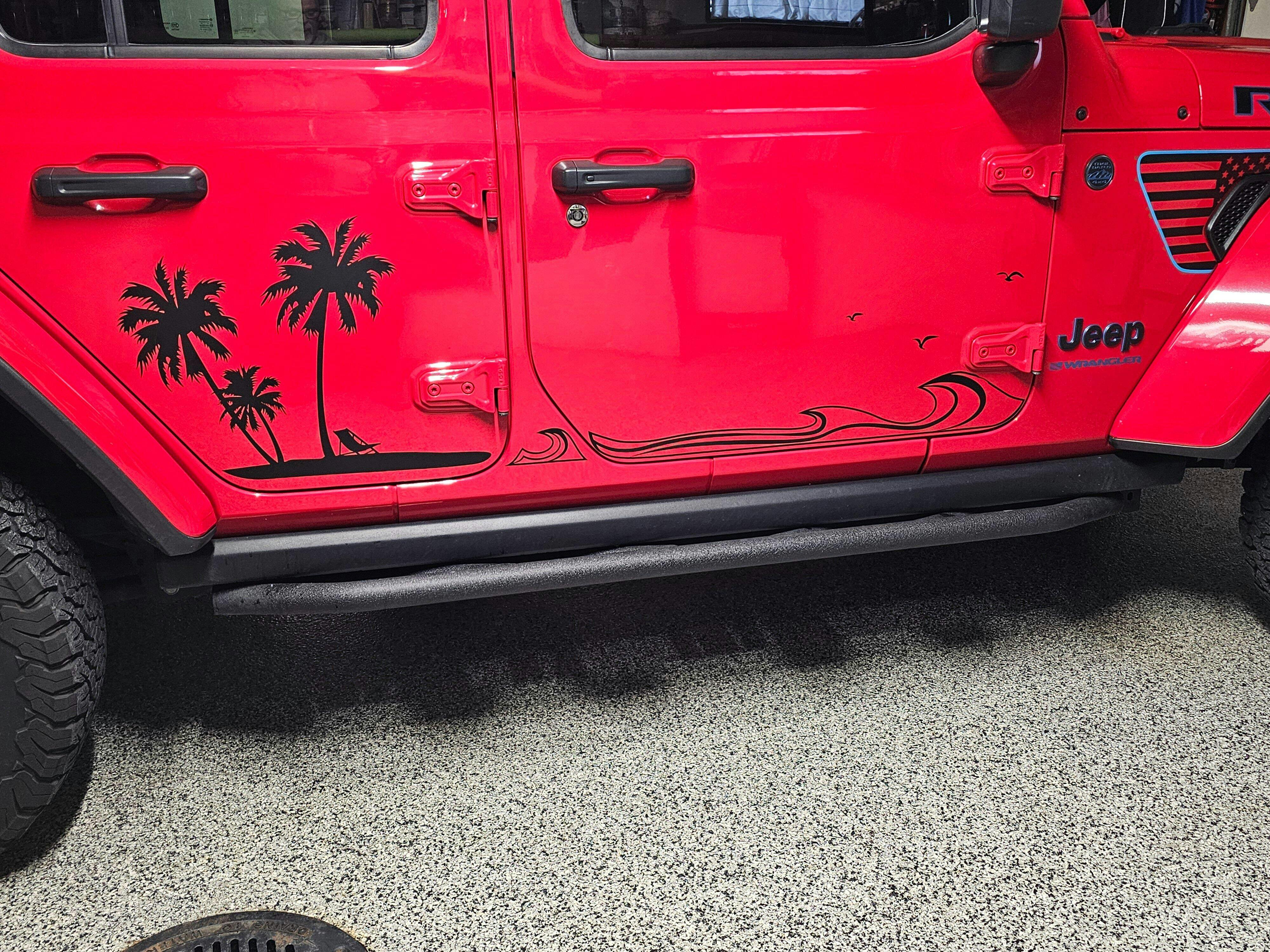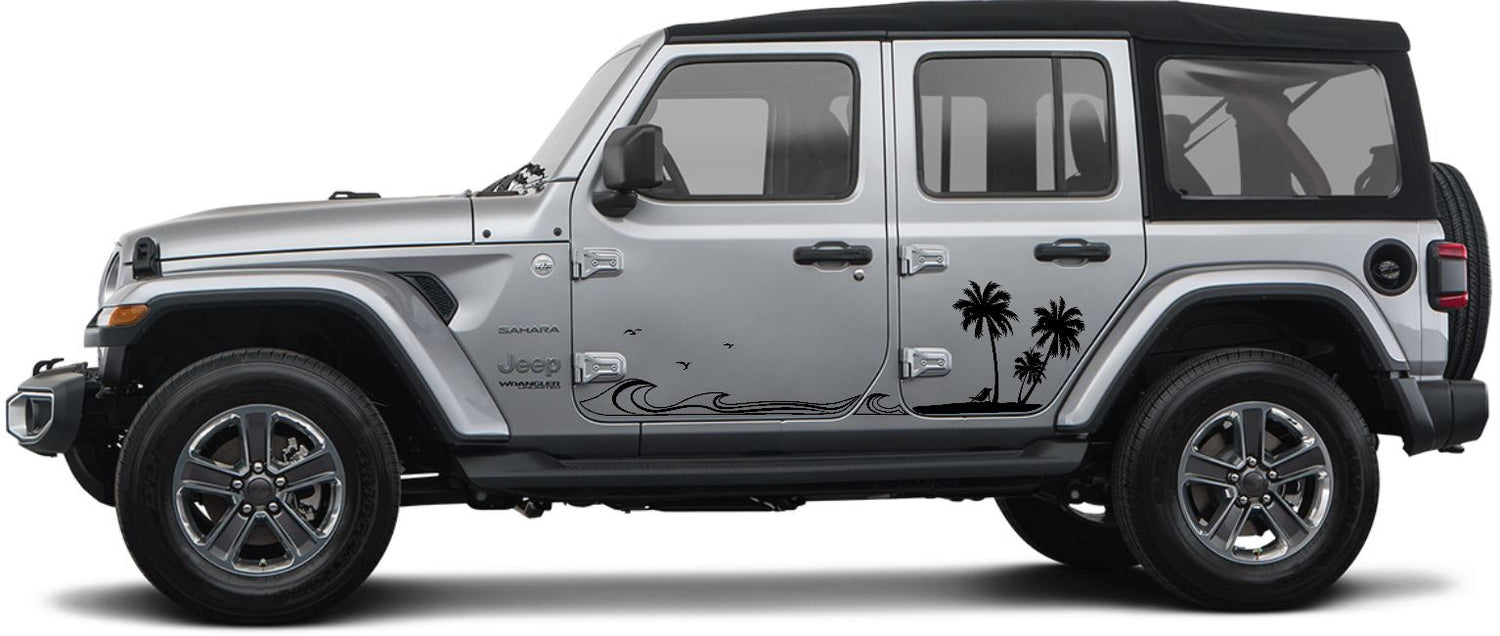 Jeep Side Palm Tree Beach Wave Decals-Hawaiian, California, Florida- Fits Jeep Wrangler & Gladiator JL Side Decal-Pair (8 Pieces)