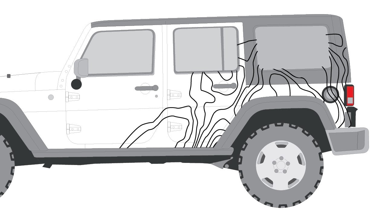 Jeep Wrangler JK Side Topographical Line Door and Roof Stripes Decal Pair