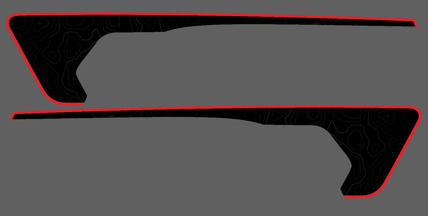 Matte black background, gloss black topographic lines with gloss accent color. Decals are printed as a single layer. Apply with wet method & felt edge squeegee.