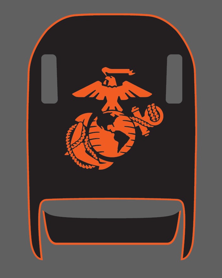 2 Layer Marines USMC EGA Blackout red line decal cut to fit on the 2020 & newer Jeep Wrangler JL 392 and 2020 and newer Jeep Gladiator Mohave hood. Designed with option to fit around washer nozzles.