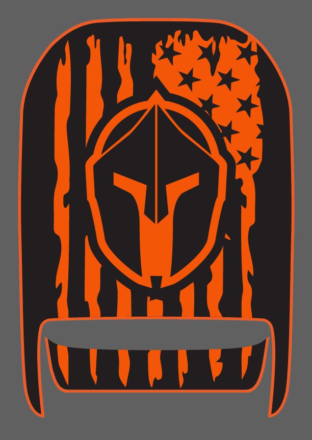 2 Layer Gladiator Helmet Spartan Flag Blackout red line decal cut to fit on the 2020 & newer Jeep Wrangler 392 and 2020 and newer Jeep Gladiator Mojave hood. Designed with option to fit around washer nozzles.