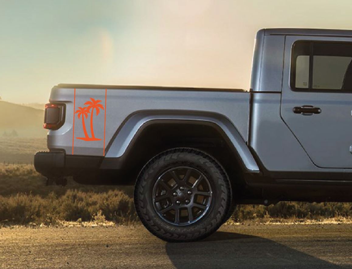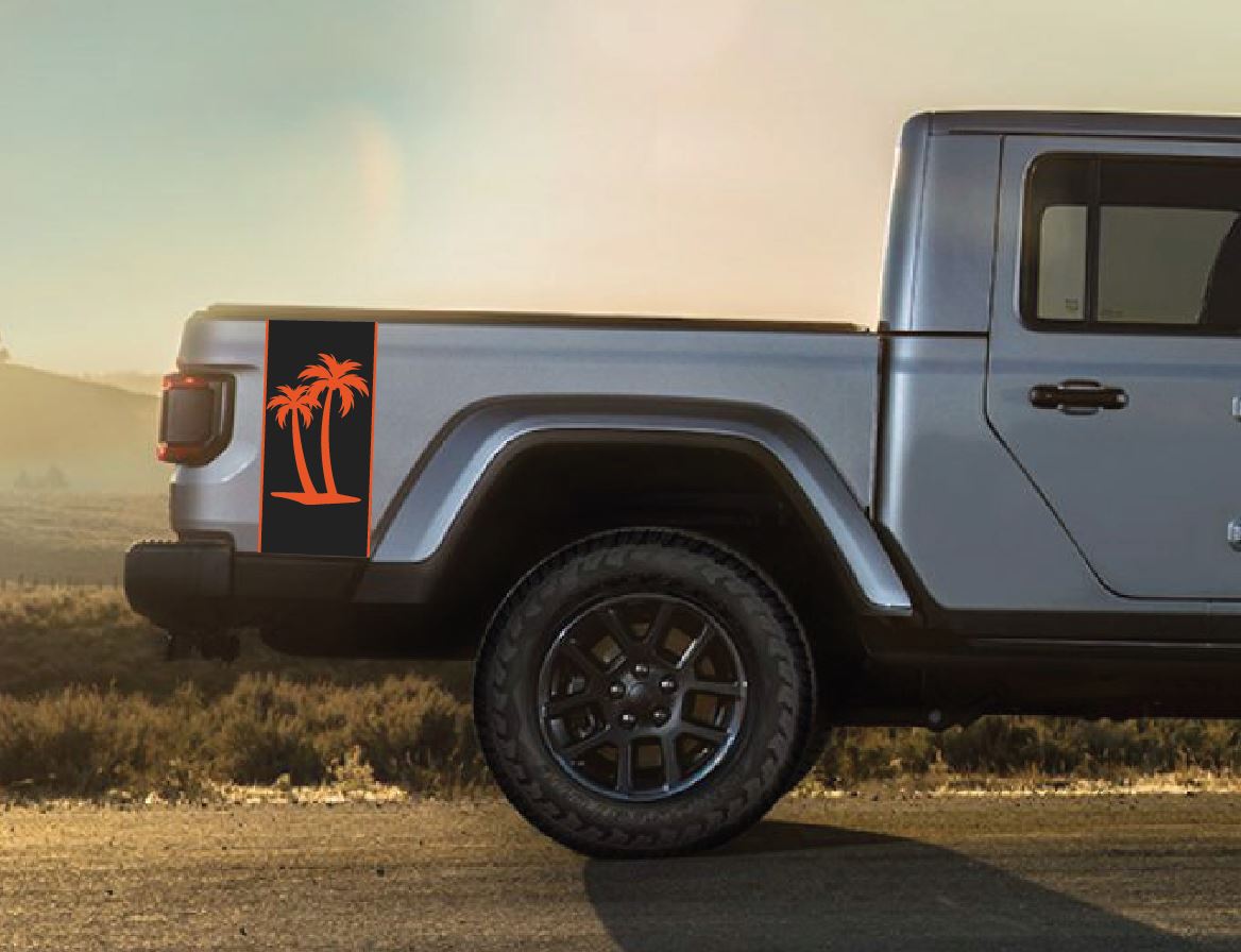 Palm Tree Beach Color Line Blackout Bed Stripe Decal Set- fits 2020 and Newer Jeep Gladiator & Trucks