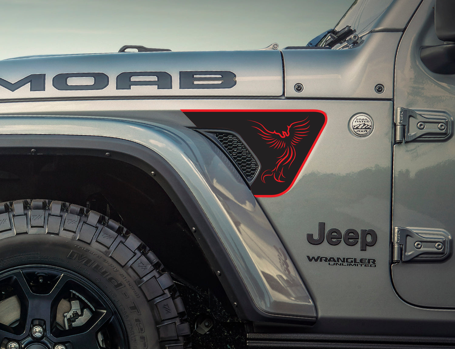 Phoenix Design decal cut to fit inside the 2018 & newer Jeep Wrangler JL and 2020 and newer Jeep Gladiator fender vent.