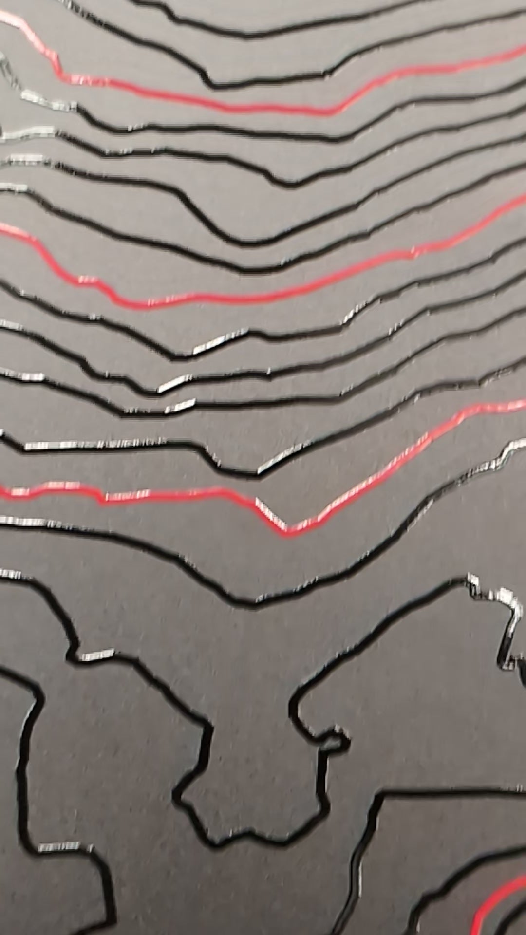 Matte black with gloss color & topographic line design.