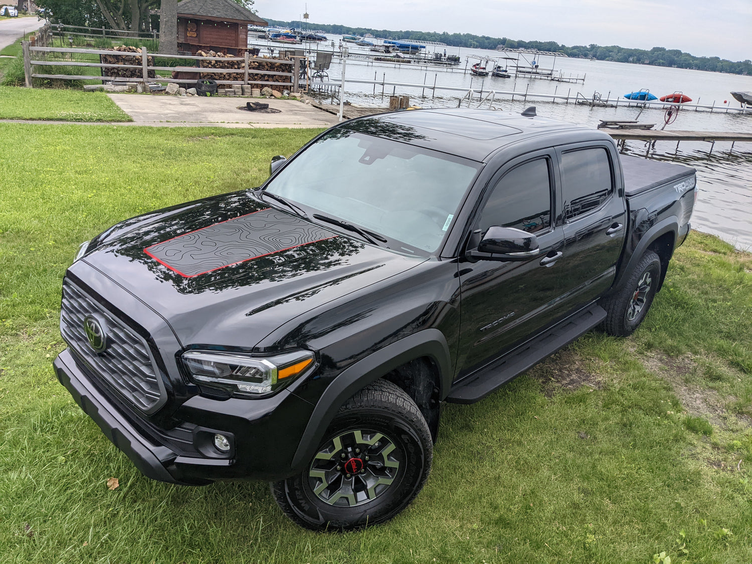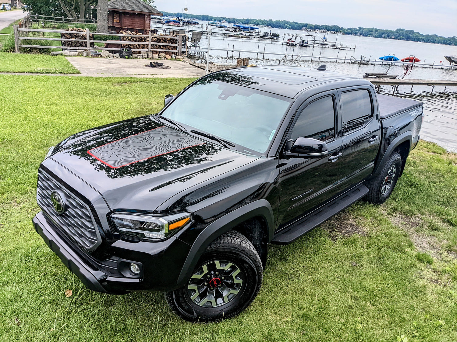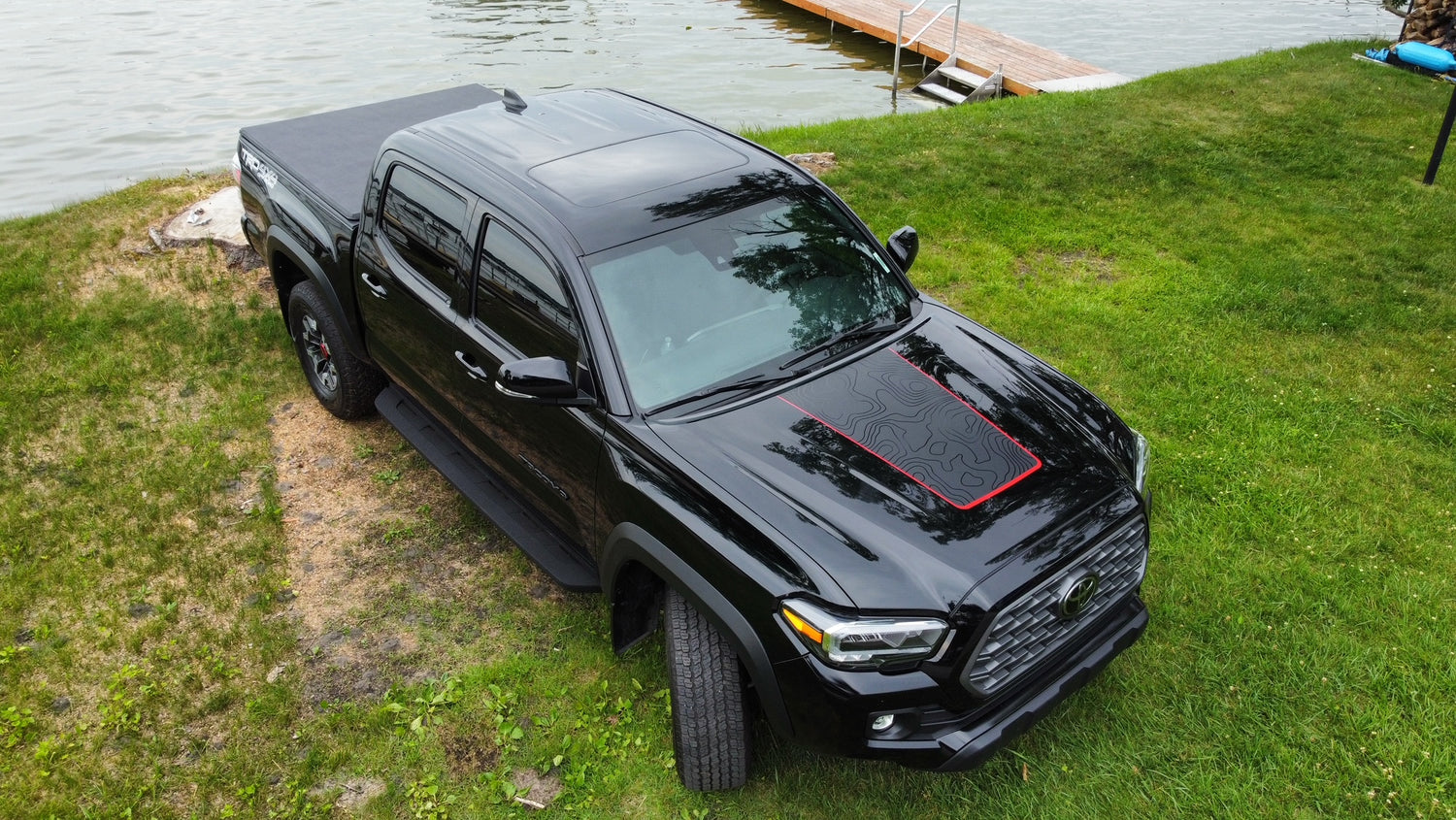 Large Blackout red line decal with Topography lines cut to fit on Toyota Tacoma TRD Off Road or Tacoma