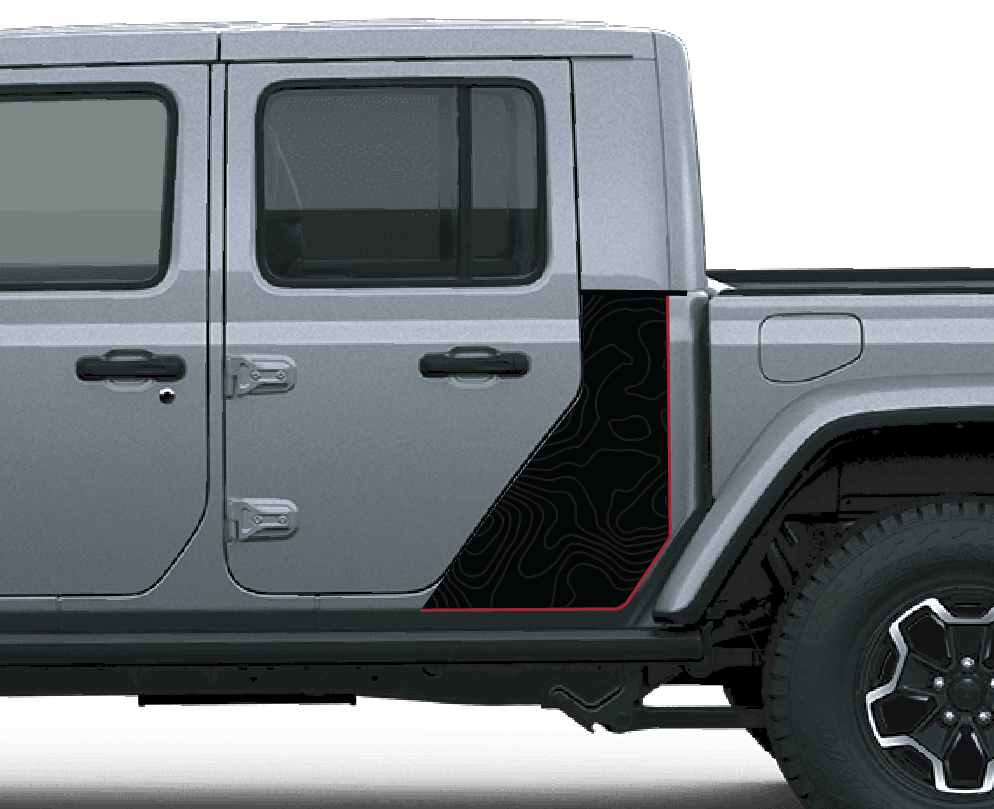 Topographical blackout color line decal cut to fit on the 2020 and newer Jeep Gladiator